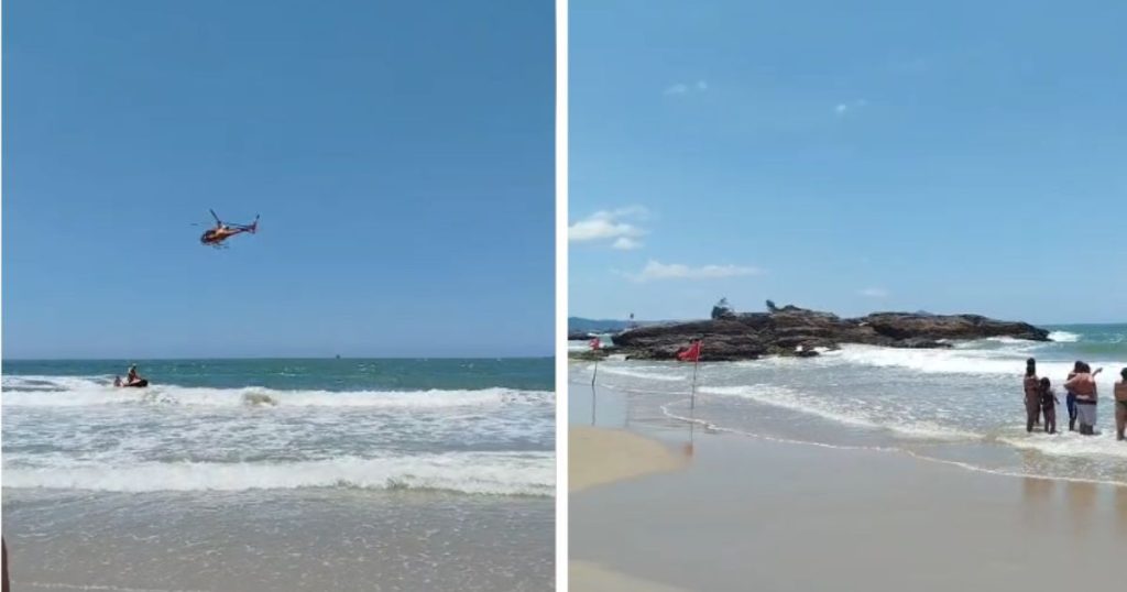Na operação, foram mobilizados o helicóptero Arcanjo-03 e uma moto aquática, que atuam na tentativa de localizar a vítima. As equipes realizam varreduras no mar e monitoram a área.